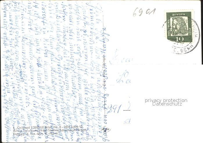 41586830 Dossenheim Schulhaus Kirche Schwesternhaus Rathaus Feuerwehrhaus Wappen Fliegeraufnahme Straehle Bild Nr. 8-2603 postalisch gelaufen Erhaltung siehe scans Alte Ansichtskarte Postkarte alte Postkarte hz_F Katcode 11110008226012