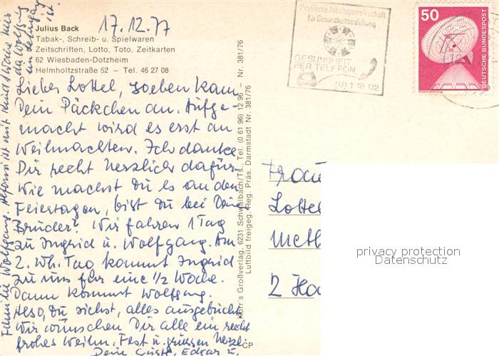 73715231 alte Postkarte Dotzheim Fliegeraufnahme postalisch gelaufen Erhaltung siehe scans [FriedD77] KatCode: 11110006414000