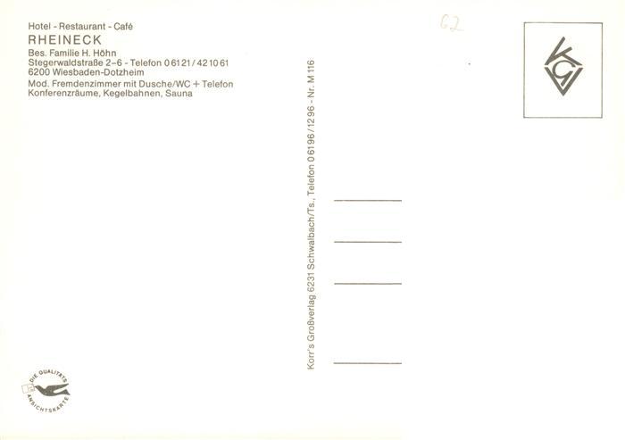 73883212 Dotzheim Hotel Restaurant Cafe Rheineck Gastraeume postalisch nicht gelaufen Erhaltung siehe scans [FriedD77] KatCode: 11110006414000