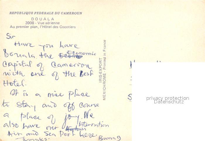 Douala Vue aerienne Hotel des Cocotiers postalisch nicht gelaufen Erhaltung siehe scans [WerneD78]