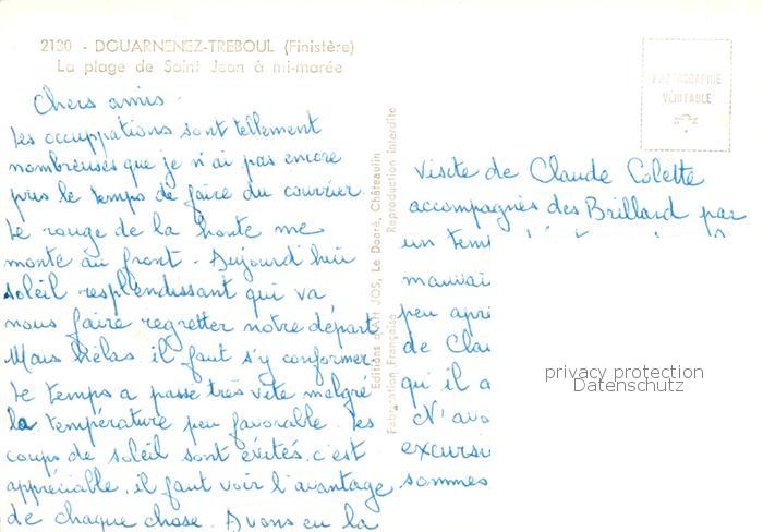 13834158 Douarnenez 29 Finistere Plage de Saint Jean a mi-marée postalisch nicht gelaufen Erhaltung siehe scans [FriedD77] Frie Katcode 11170029429046