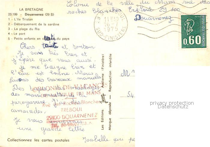 13784502 Douarnenez Ile Tristan Debarquement de la sardine La plage du Ris Le port Petits enfants en costume du pays postalisch gelaufen Erhaltung siehe scans [FriedD77] carte postale Frie Katcode 11170029429046