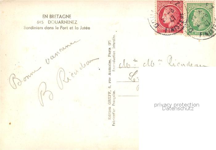 13581942 Douarnenez Sardiniers dans le port et la jetée postalisch gelaufen Erhaltung siehe scans [FriedD77] carte postale Frie Katcode 11170029429046
