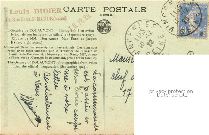 carte postale Douaumont Fliegeraufnahme Louis Didier postalisch gelaufen Erhaltung siehe scans [LiesaD40]