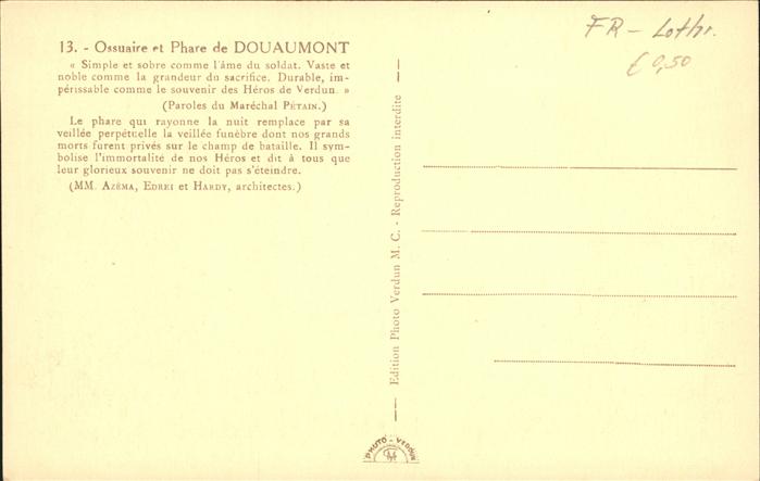 11442905 Douaumont Ossuaire le Phare Beinhaus Leuchtturm KatCode 11170055355164