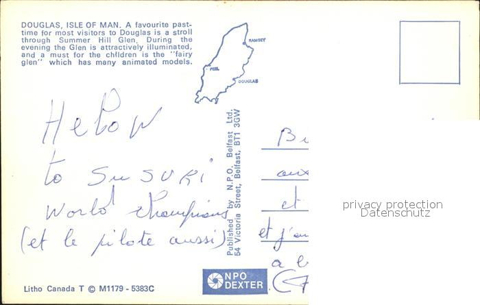 old postcard Douglas Isle of Man Panorama bei Nacht postalisch gelaufen Erhaltung siehe scans