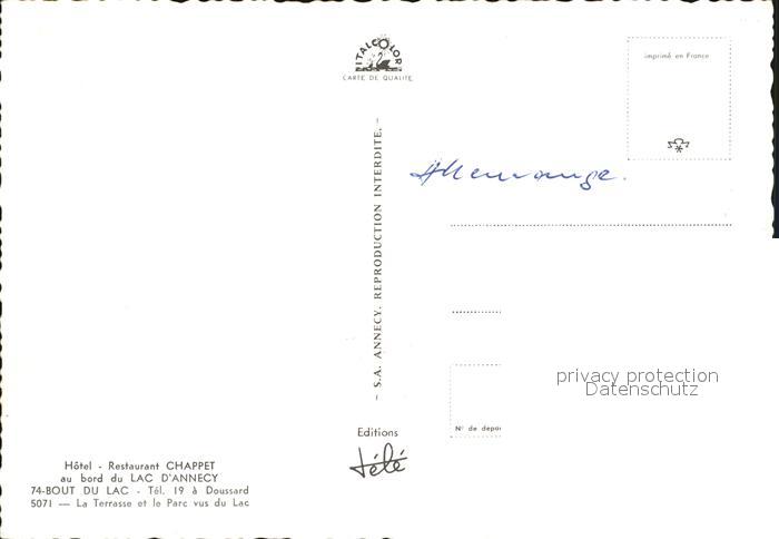 12495019 Doussard Hotel Chappet postalisch nicht gelaufen Erhaltung siehe scans KatCode: 11170074174104