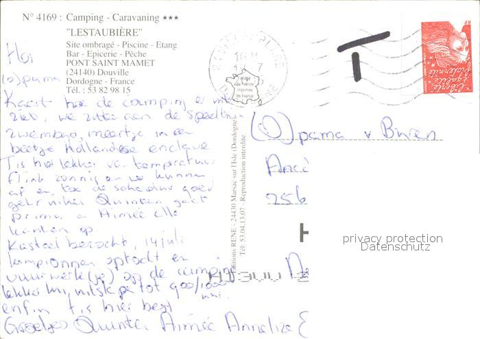 12061722 carte postale Douville Camping Lestaubiere postalisch gelaufen Erhaltung siehe scans KatCode: 11170024124155