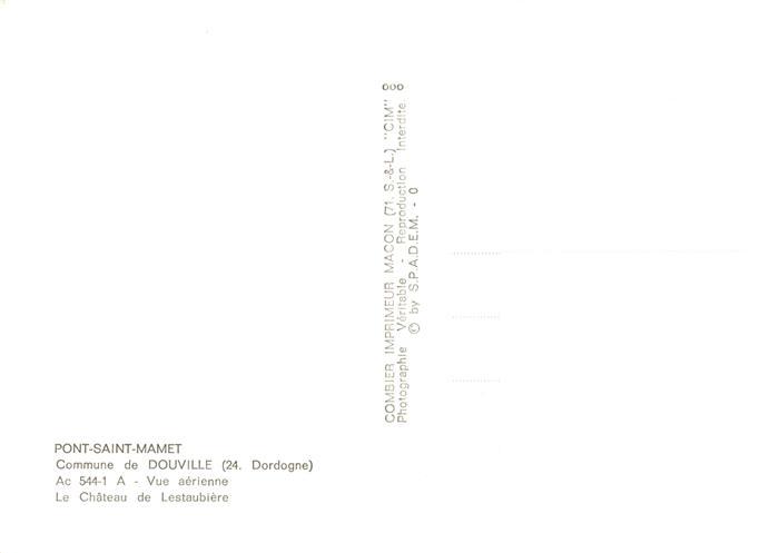 13880022 Douville Pont Saint Mamet Le Chateau de Lestaubiere Vue aerienne postalisch nicht gelaufen Erhaltung siehe scans [WerneD78] Wern Katcode 11170024124155