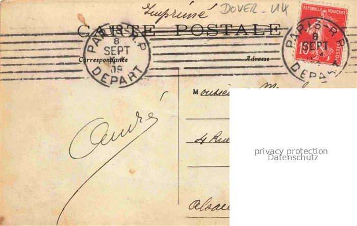74011459 old postcard Dover Kent UK Pionniers de l’air Aviateur Francais Blériot Portrait Kuestenpanorama postalisch gelaufen Erhaltung siehe scans [FriedD77] KatCode: 11570UKJ4J42UE