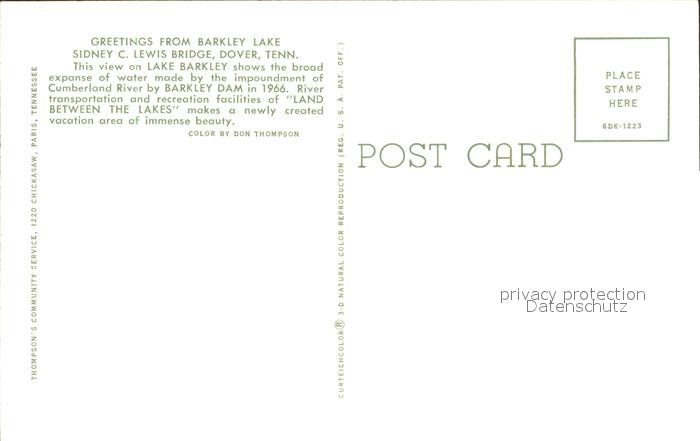 72091332 Dover Tennessee Barkley Lake Sidney Lewis Bridge postalisch nicht gelaufen Erhaltung siehe scans KatCode: 14140450000000