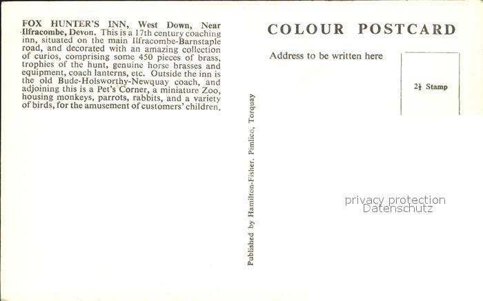 Down Down Fox Hunters Inn postalisch nicht gelaufen Erhaltung siehe scans
