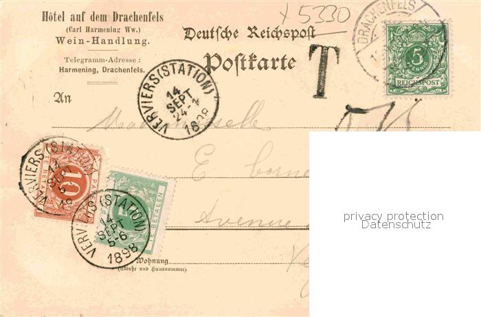 42879841 alte Postkarte Drachenfels Drachenburg Zahnradbahn postalisch gelaufen Erhaltung siehe scans [NatalD47] KatCode: 11110005382024
