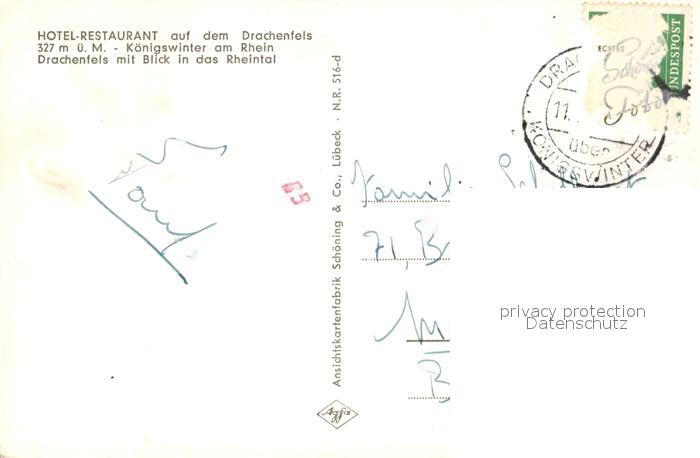 73277617 alte Postkarte Drachenfels Hotel Restaurant auf dem Drachenfels mit Rheinblick postalisch gelaufen Erhaltung siehe scans [LiesaD40] KatCode: 11110005382024