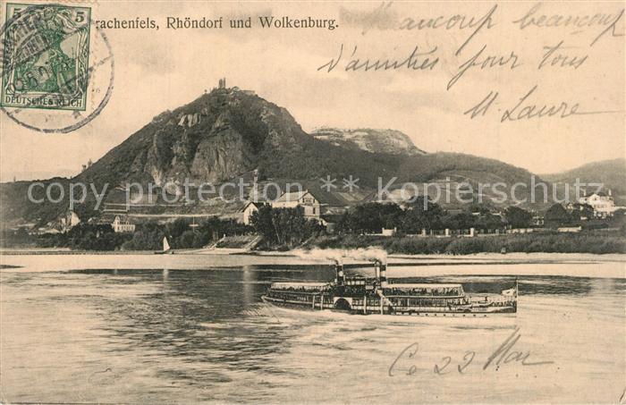73508117 alte Postkarte Drachenfels mit Rhoendorf und Wolkenburg postalisch gelaufen Erhaltung siehe scans [WerneD78] KatCode: 11110005382024