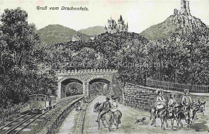 74122753 alte Postkarte Drachenfels Ruine Koenigswinter NRW Eisenbahn Bruecke Schloss Drachenburg postalisch gelaufen Erhaltung siehe scans [WerneD78] KatCode: 11110005382024