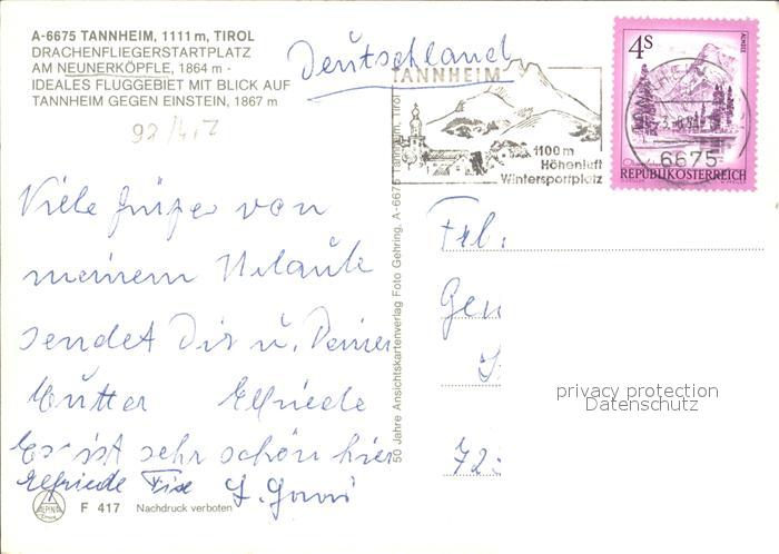 alte Postkarte Drachenflug Drachenfliegerstartplatz Tannheim Tirol Neunerkoepfle postalisch gelaufen Erhaltung siehe scans