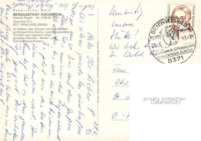 73166613 alte Postkarte Drachselsried Berggasthof Hochstein Bayerischer Wald postalisch gelaufen Erhaltung siehe scans [FriedD77] KatCode: 11110009276120