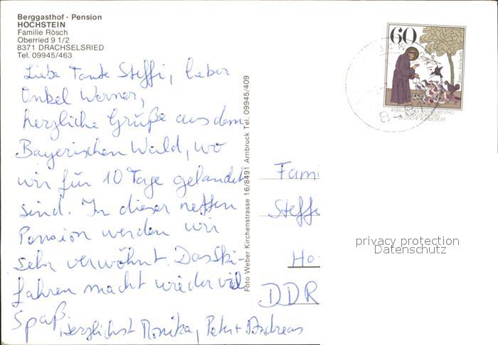 72372301 alte Postkarte Drachselsried Berggasthof Pension Hochstein Winterpanorama postalisch gelaufen Erhaltung siehe scans KatCode: 11110009276120