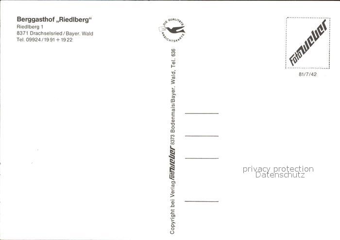 72513474 Drachselsried Berggasthof Riedlberg postalisch nicht gelaufen Erhaltung siehe scans KatCode: 11110009276120