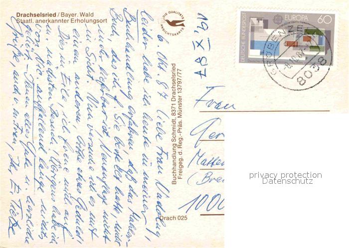 72841775 alte Postkarte Drachselsried Fliegeraufnahme postalisch gelaufen Erhaltung siehe scans [LiesaD40] KatCode: 11110009276120