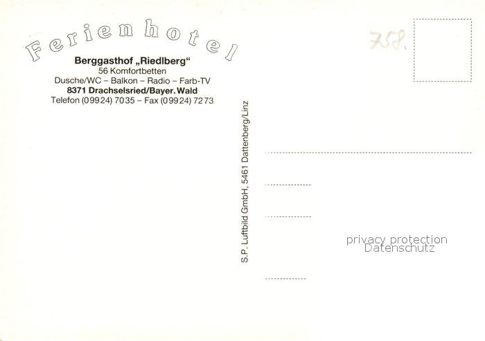 73091505 Drachselsried Fliegeraufnahme Berggasthof Riedlberg postalisch nicht gelaufen Erhaltung siehe scans [KathaD81] KatCode: 11110009276120