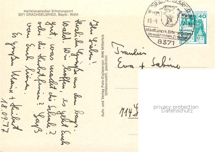 73008447 alte Postkarte Drachselsried Fliegeraufnahme postalisch gelaufen Erhaltung siehe scans [WerneD78] KatCode: 11110009276120