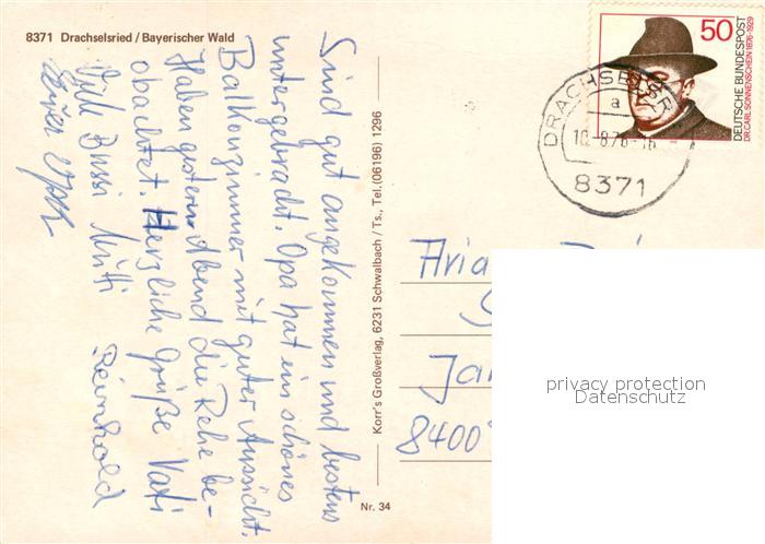 73249782 alte Postkarte Drachselsried Panorama Dorfstrasse Kirche postalisch gelaufen Erhaltung siehe scans [WerneD78] KatCode: 11110009276120