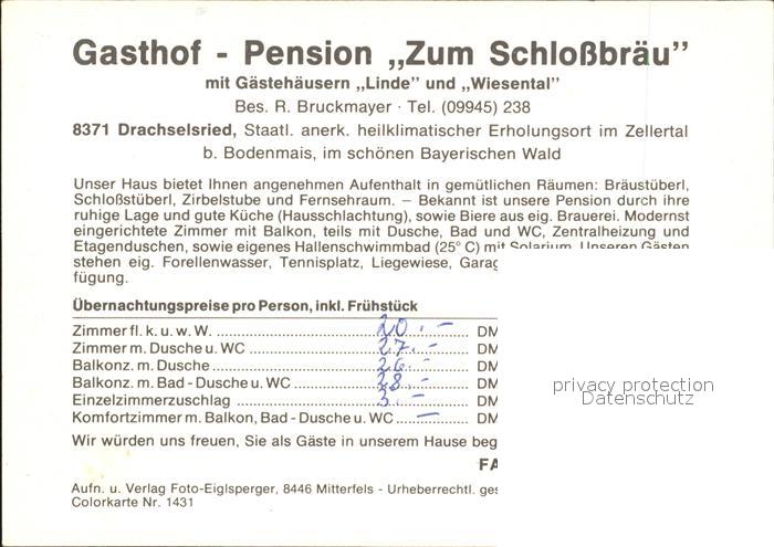 72063217 Drachselsried Zum Schlossbraeu Gasthaus Pension postalisch nicht gelaufen Werbekarte (keine Postkarte) Erhaltung siehe scans KatCode: 11110009276120