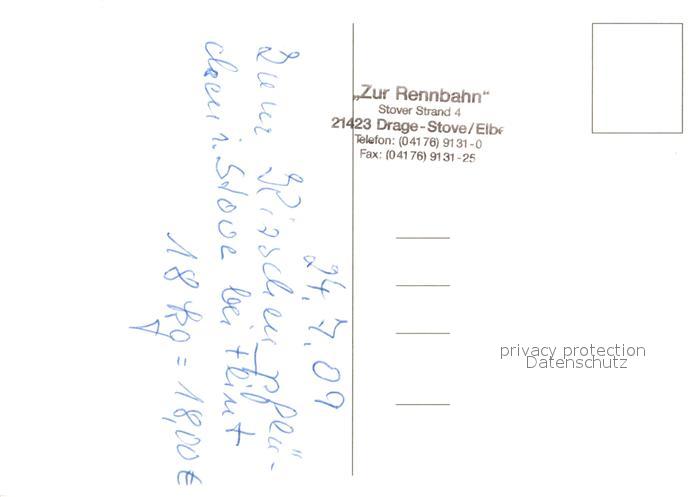 73092812 Drage Elbe Restaurant Zur Rennbahn postalisch nicht gelaufen Erhaltung siehe scans [PaolaD17] KatCode: 11110003353007