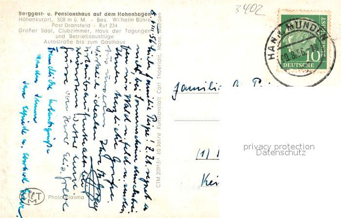 43351034 alte Postkarte Dransfeld Berggasthaus Pensionshaus auf dem Hohenhagen postalisch gelaufen Erhaltung siehe scans [KathaD81] KatCode: 11110003152006