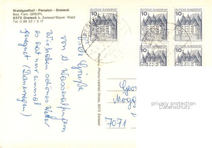 73646141 alte Postkarte Dreieck Regen Waldgasthof Pension Dreieck Brunnen postalisch gelaufen Erhaltung siehe scans [WerneD78] KatCode: 11110009276138