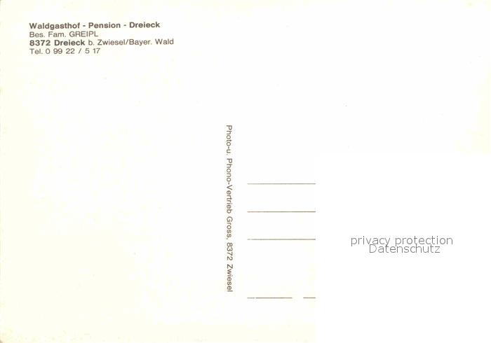 72701183 Dreieck Regen Waldgasthof Pension Dreieck postalisch nicht gelaufen Erhaltung siehe scans [KathaD79] KatCode: 11110009276138