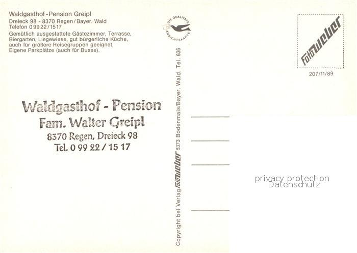 73203500 Dreieck Regen Waldgasthof Pension Greipl Restaurant postalisch nicht gelaufen Erhaltung siehe scans [FriedD77] KatCode: 11110009276138