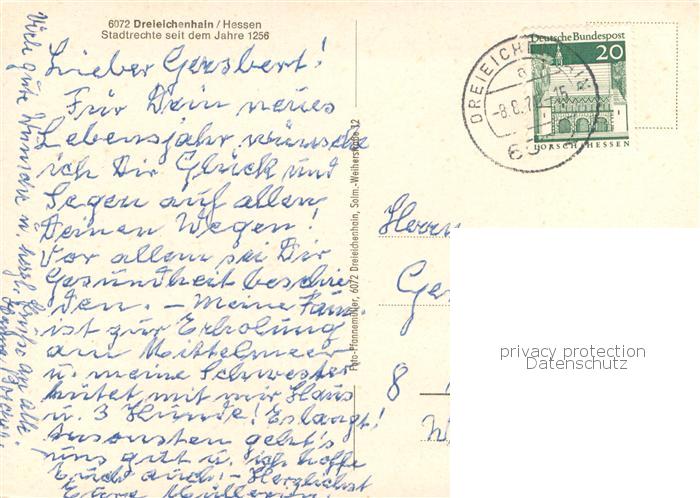 73780083 alte Postkarte Dreieichenhain Burg Hayn Burgweiher postalisch gelaufen Erhaltung siehe scans [FriedD77] KatCode: 11110006438002