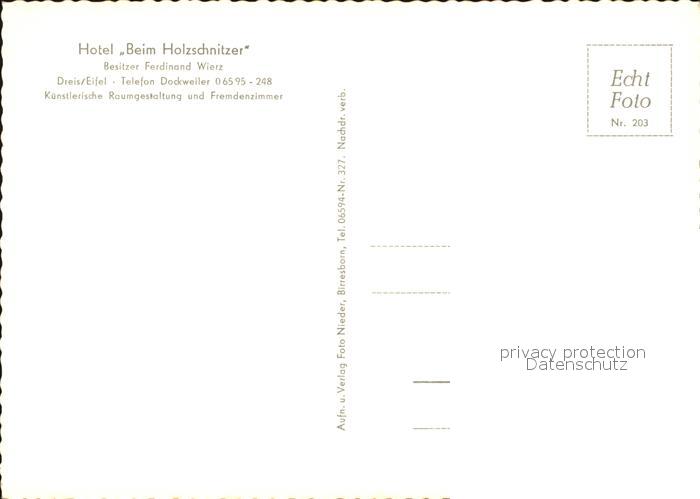 72529781 Dreis Eifel Hotel Beim Holzschnitzer postalisch nicht gelaufen Erhaltung siehe scans KatCode: 11110007233020