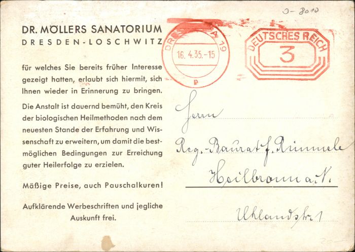 30727213 alte Postkarte Dresden Dr Moellers Sanatorium postalisch gelaufen KatCode: 11110014262000