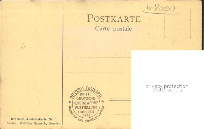 41976267 DRESDEN Elbe 3. Deutsche Kunstgewerbe Ausstellung 1906 Kunstindustriehalle Offizielle Ansichtskarte Nr 6 postalisch nicht gelaufen Erhaltung siehe scans Alte Ansichtskarte Postkarte Frie Katcode 11110014262000