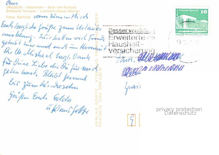 72624514 alte Postkarte DRESDEN Elbe Albertinum Rathausblick Bruehlsche Terrasse Loschwitz Blaues Wunder postalisch gelaufen Erhaltung siehe scans [WerneD78] KatCode: 11110014262000