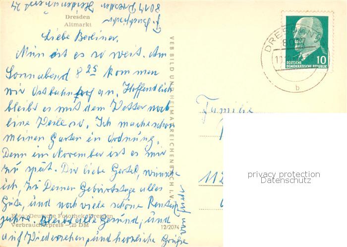 73758279 DRESDEN Elbe Altmarkt postalisch gelaufen Erhaltung siehe scans [FriedD77] alte Postkarte Frie Katcode 11110014262000