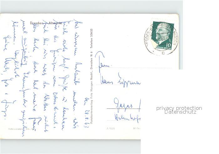 72136228 alte Postkarte DRESDEN Elbe Altmarkt postalisch gelaufen Erhaltung siehe scans KatCode: 11110014262000