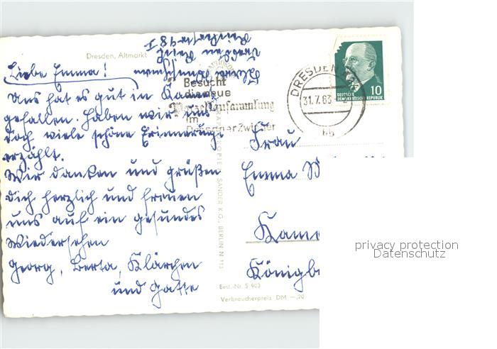 71985903 alte Postkarte DRESDEN Elbe Altmarkt postalisch gelaufen Erhaltung siehe scans KatCode: 11110014262000