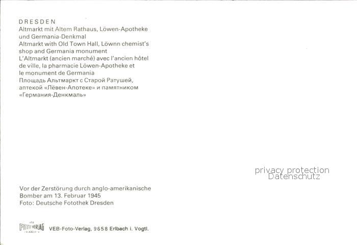 72383438 DRESDEN Elbe Altmarkt Altes Rathaus Loewenapotheke postalisch nicht gelaufen Erhaltung siehe scans KatCode: 11110014262000