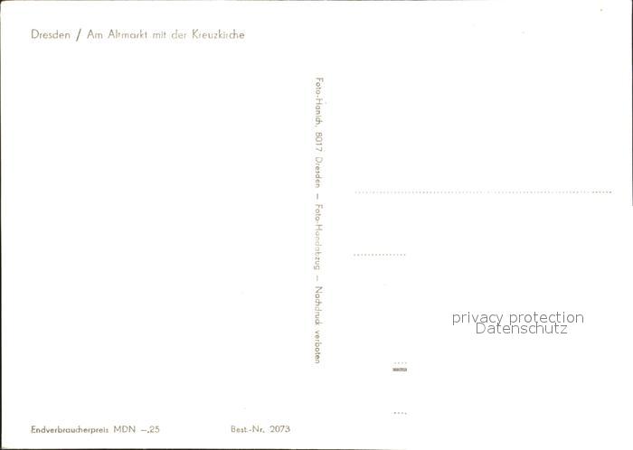 72315010 DRESDEN Elbe Altmarkt Kreuzkirche postalisch nicht gelaufen Erhaltung siehe scans KatCode: 11110014262000
