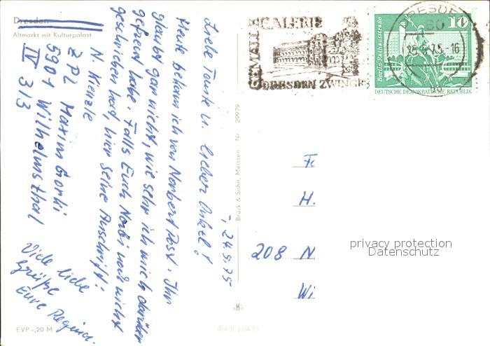 72263341 alte Postkarte DRESDEN Elbe Altmarkt Kulturpalast postalisch gelaufen Erhaltung siehe scans KatCode: 11110014262000
