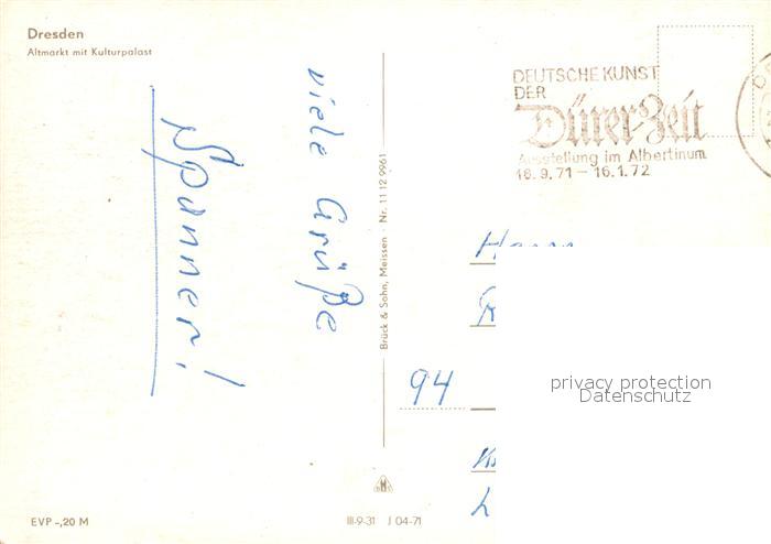 73104808 alte Postkarte DRESDEN Elbe Altmarkt mit Kulturpalast postalisch gelaufen Erhaltung siehe scans [WerneD78] KatCode: 11110014262000