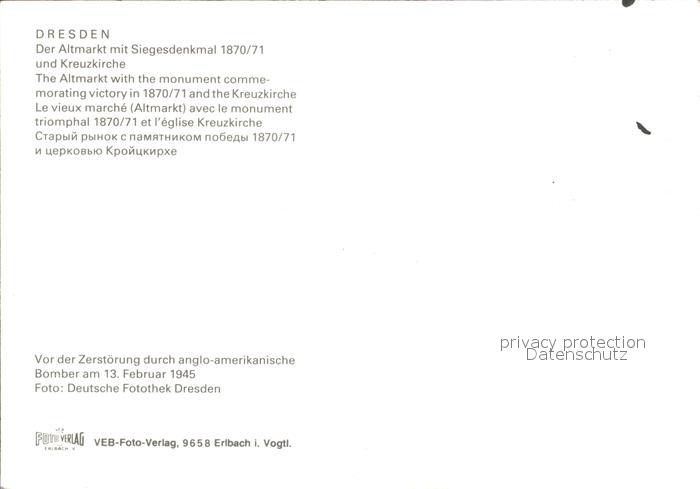 72008335 DRESDEN Elbe Altmarkt mit Siegesdenkmal und Kreuzkirche postalisch nicht gelaufen Erhaltung siehe scans KatCode: 11110014262000