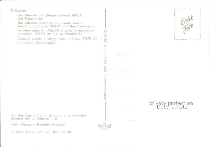 72365664 DRESDEN Elbe Altmarkt mit Siegesdenkmal und Kreuzkirche postalisch nicht gelaufen Erhaltung siehe scans KatCode: 11110014262000