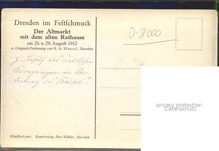 42317040 DRESDEN Elbe Altmarkt Rathaus Festschmuck 1912 postalisch nicht gelaufen Erhaltung siehe scans KatCode: 11110014262000