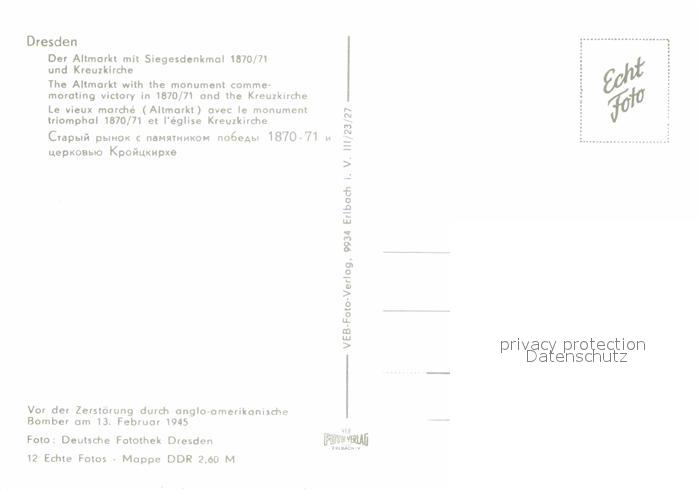 72842561 DRESDEN Elbe Altmarkt Siegesdenkmal Kreuzkirche postalisch nicht gelaufen Erhaltung siehe scans [NatalD47] KatCode: 11110014262000